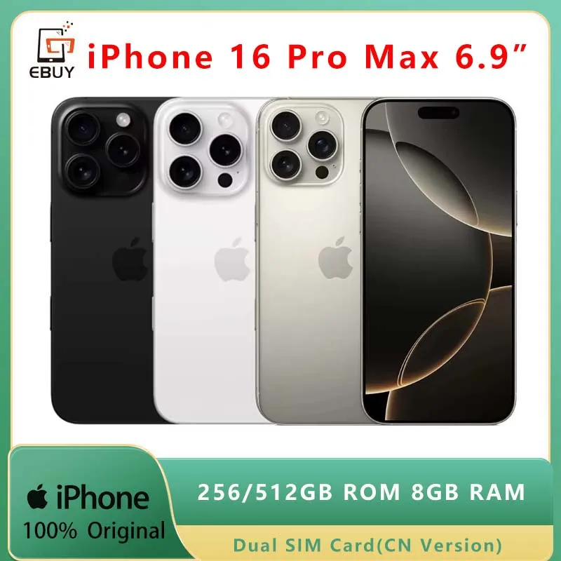 Original 6.9″ iPhone 16 Pro Max LTPO Super Retina XDR OLED Face ID NFC A18Pro 256/512GB 8GB 98% New 5G Dual SIM Card Cell Phone